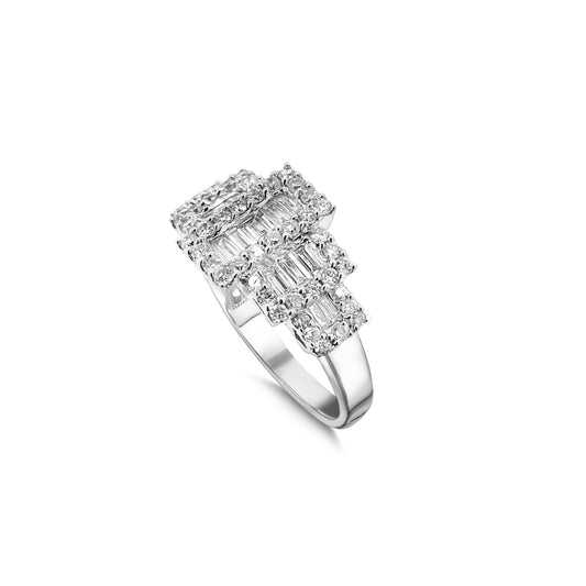 18k Baguette Cushion Cluster Diamond Stud Earrings