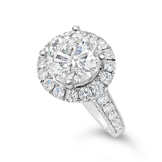18k Antoinette Halo Cathedral Round Cut Engagement Ring
