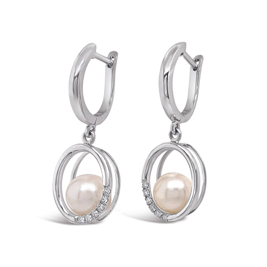 18k Oval Drop Pearl Diamond Earrings