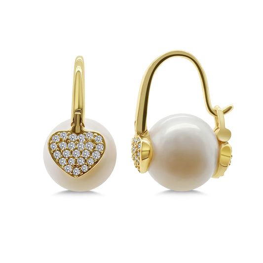 14K Diamond Heart Pearl Drop Earring