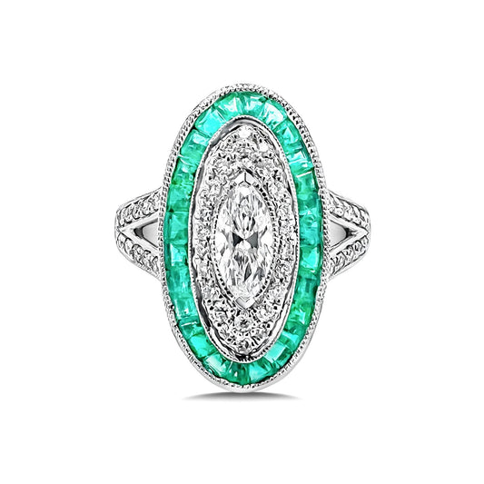 18KW Marquise Halo Diamond Semi Ring Mounting