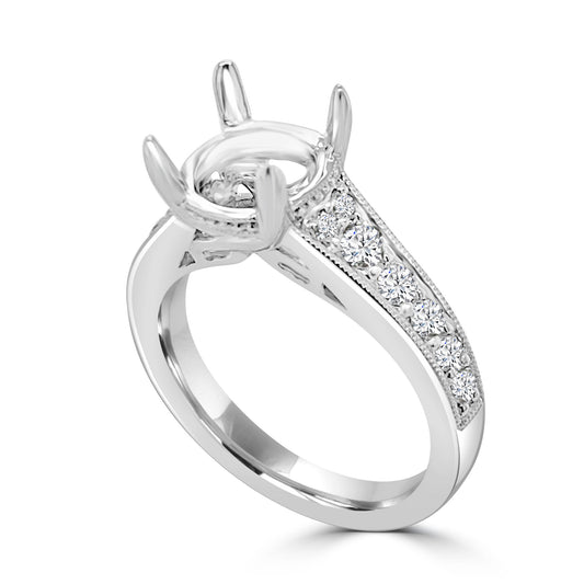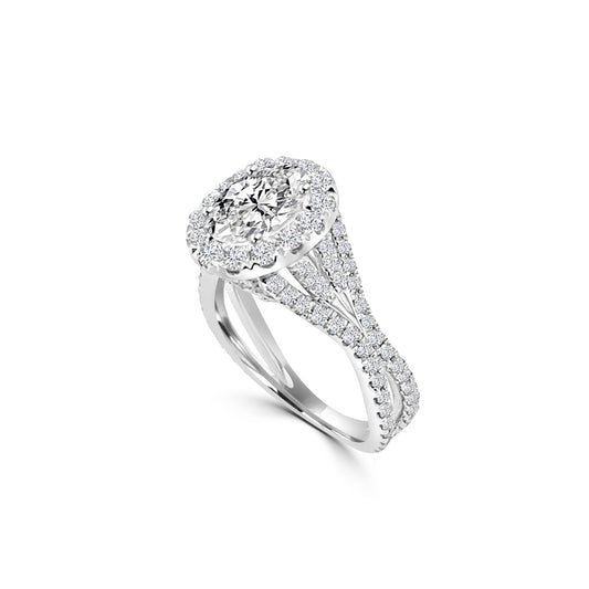 18KW Oval Halo Split Shank Diamond Ring Mounting