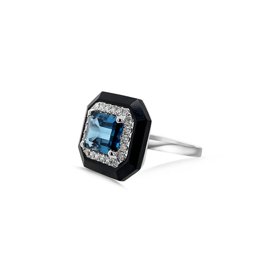 18KW London Blue Topaz, Black Onyx, & Diamond Necklace
