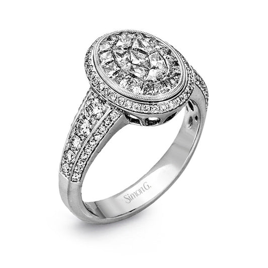 Simon G 18k Oval Cluster Halo Diamond Engagement Ring