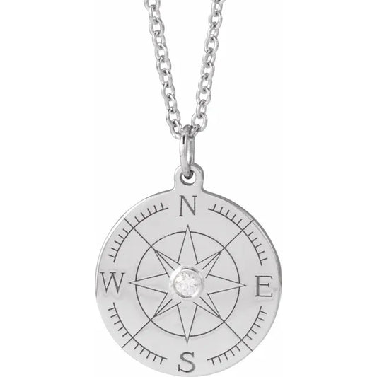 14K Gold Natural Diamond Compass 16-18" Necklace