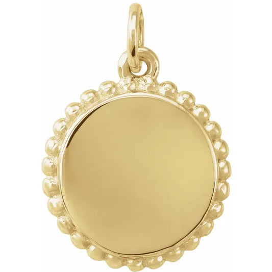 14K Gold Engravable Beaded Disc Pendant