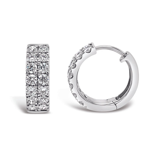 14k Petite Double Row Diamond Hoop Earrings