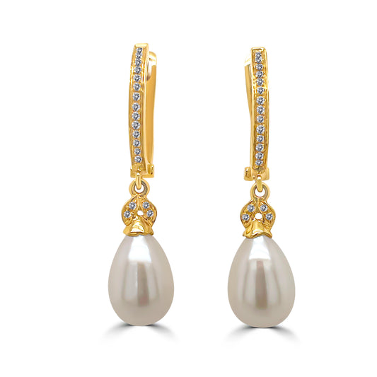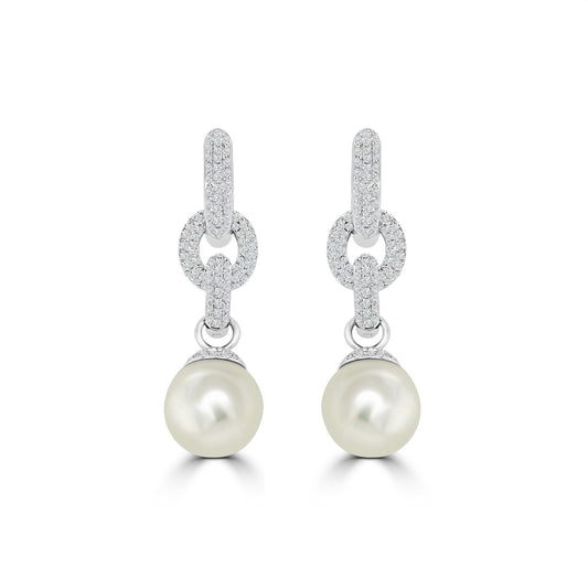 18k Micro Pavé Heart Pearl & Diamond Dangling Earrings