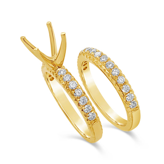 18k Iva Classic Milgrain Diamond Ring Set