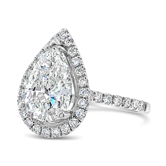 18k Lucienne Pear-shaped Halo F-IF Diamond Engagement Ring