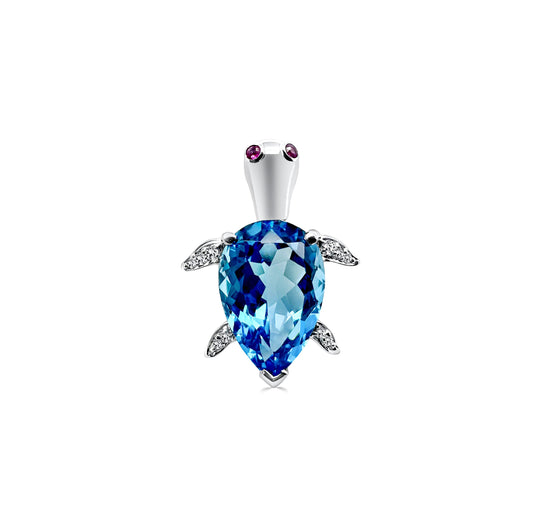 Pear Topaz, Ruby & Diamond Turtle Pendant