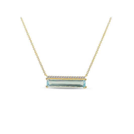 Sky Blue Topaz Bar Diamond Necklace
