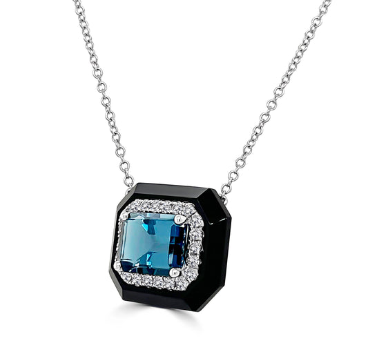 18KW London Blue Topaz, Black Onyx, & Diamond Necklace